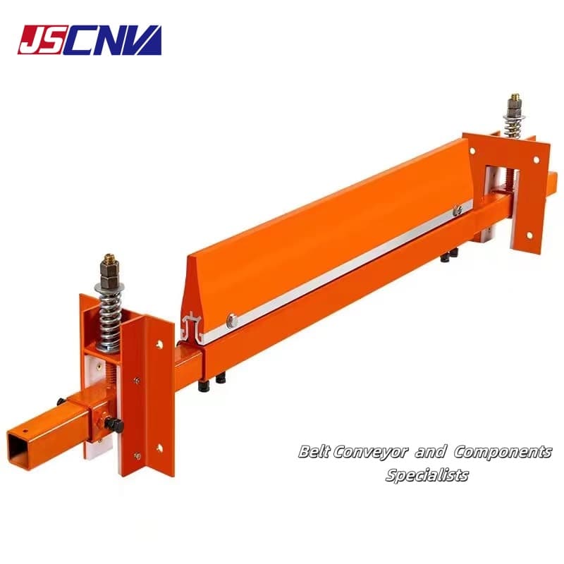 వన్-లైన్ క్లీనర్ రిటర్న్ బెల్ట్ క్లీనింగ్ కోసం. ఇది ప్రధానంగా వెనుక బెండ్ పుల్లీ ముందు మరియు బెల్ట్ కన్వేయర్ యొక్క భారీ నిలువు టెన్షనింగ్ పరికరం ముందు ఉపయోగించబడుతుంది. ఇది ప్రత్యేకంగా రెండు-మార్గం నడుస్తున్న బెల్ట్ యొక్క ఖాళీ విభాగాన్ని శుభ్రం చేయడానికి ఉపయోగించవచ్చు. ఇది యాసిడ్ మరియు క్షార నిరోధకత, జ్వాల రిటార్డెంట్ మరియు యాంటిస్టాటిక్, అధిక దుస్తులు నిరోధకత యొక్క లక్షణాలను కలిగి ఉంటుంది మరియు బెల్ట్‌ను పాడు చేయదు. బ్లేడ్ అధిక బలం కలిగిన పాలియురేతేన్‌తో తయారు చేయబడింది, V- ఆకారపు డిజైన్ బెల్ట్ శుభ్రతను నిర్ధారిస్తుంది మరియు స్వయంచాలక గ్రావిటీ డిజైన్ బ్లేడ్ అరిగిపోయినప్పుడు ఆటోమేటిక్-పరిహారాన్ని నిర్ధారిస్తుంది.